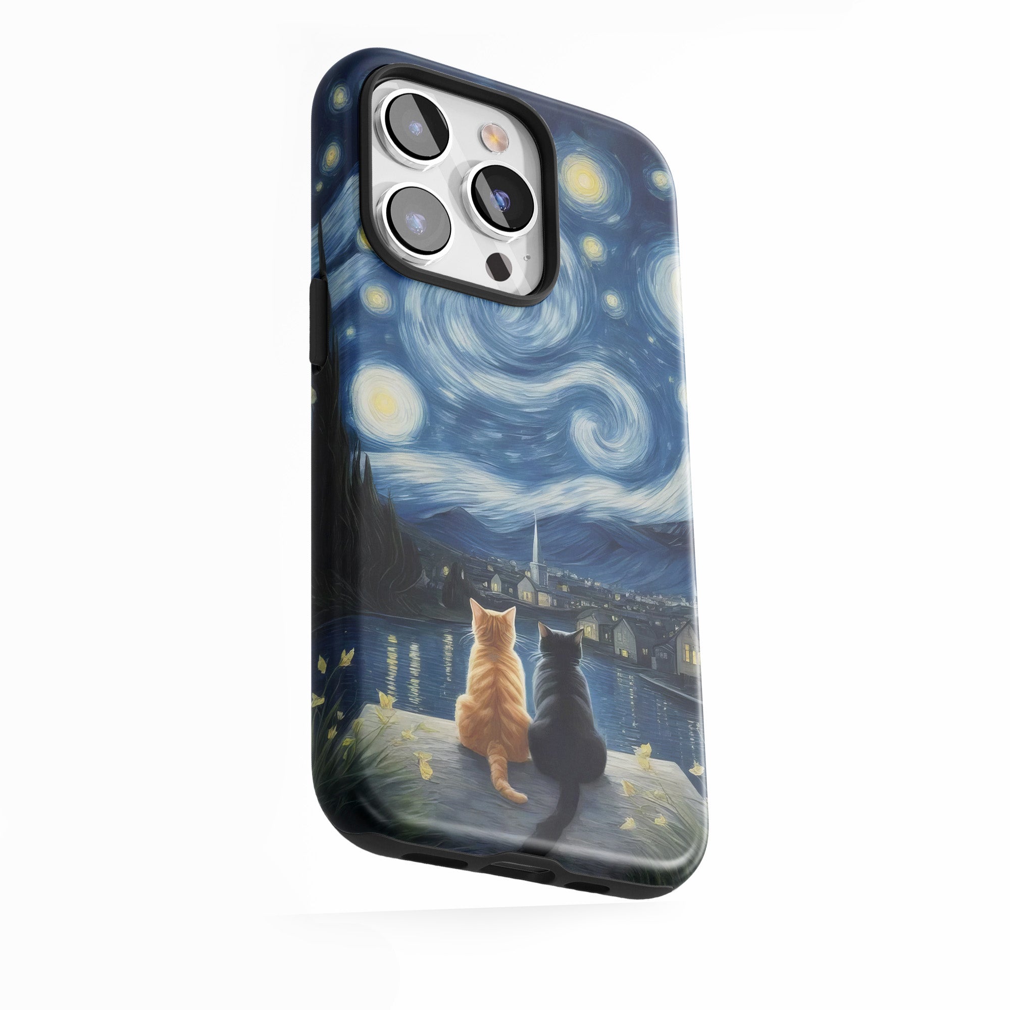 Zwei Katzen in sternenklarer Nacht.